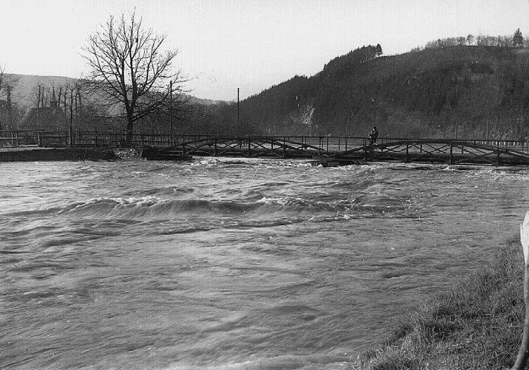Seit den 1960er Jahren kann die #Biggetalsperre mit ihrem großen Speichervermögen größere Regenmengen im Herbst und das Schmelzwasser im Frühjahr aufnehmen, so dass extreme Hochwasser unwahrscheinlich geworden sind. Das war früher anders. Es kam immer wieder vor, dass sich im November (Katharinenflut) oder zur Zeit der Schneeschmelze das ganze Biggetal in einen reißenden Strom verwandelte. Dann standen die Ahauser Wiesen komplett unter Wasser. Der Weg zur Ahauser Mühle war vom dama-ligen Hochofen der Kalkwerke bis zur Mühlenbrücke überflutet. Die Straße nach #Finnentrop konnte ab der Hustert nicht mehr passiert werden.