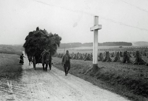 Auf dem zweiten Bild mit dem Erntewagen aus dem Hollebock kommend, erkennt man das der Straßenverlauf Richtung Hollenbock bereits im Jahre 1948 gleich zu heute war. Nur das Kreuz hatte damals eine andere Position, aber an fast ähnlicher Stelle. Dieses Kreuz stand bereits vor 1854. Allerdings ist nicht bekannt in welchem Jahr und aus welchem Grund dieses in der vergangenen Zeit aufgestellt wurde.